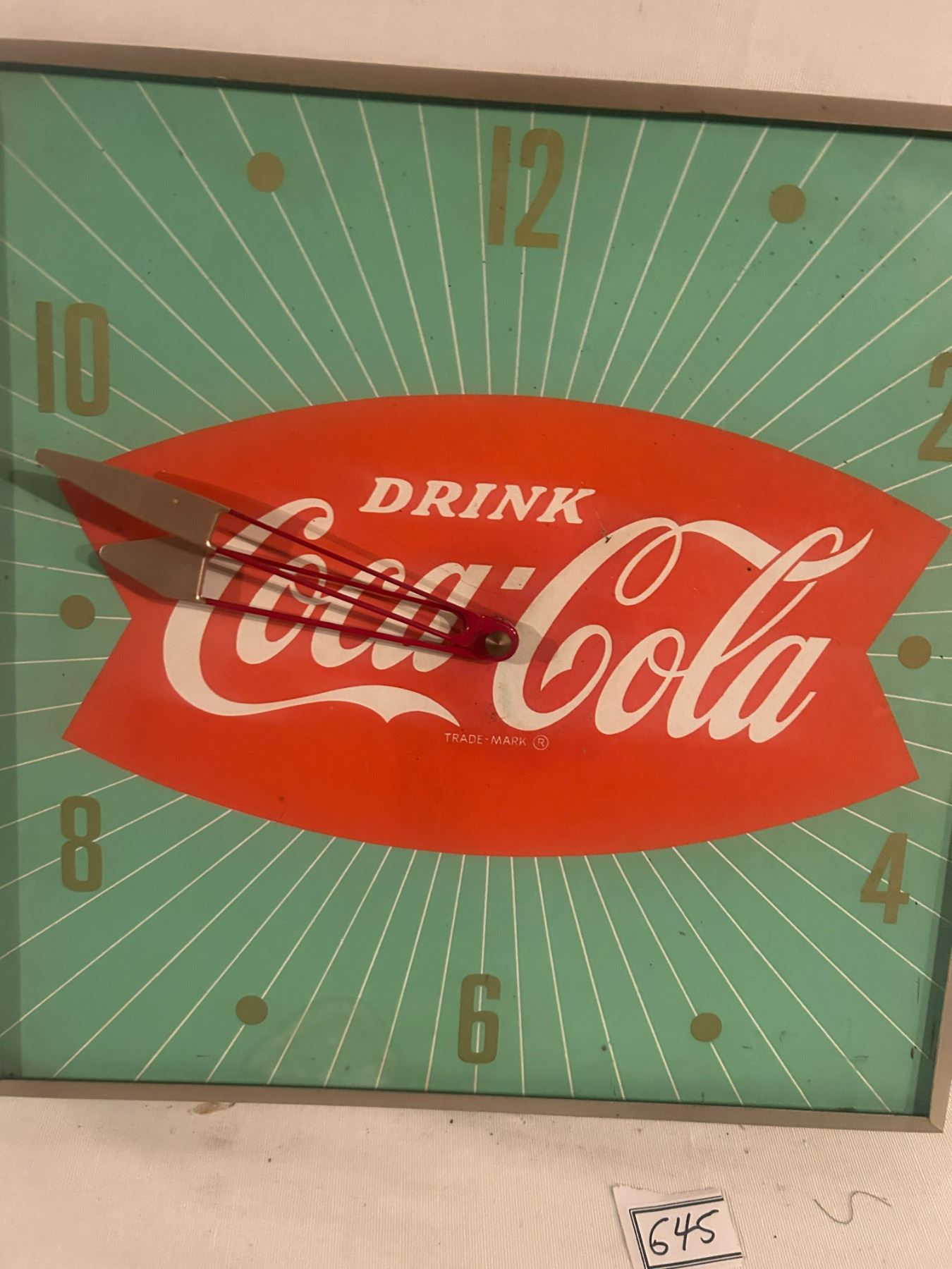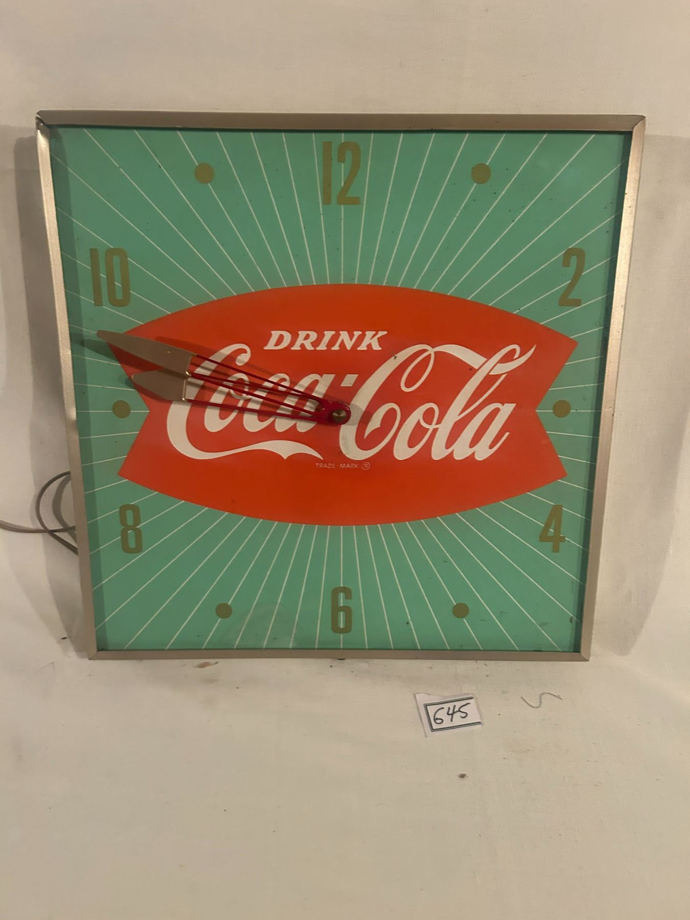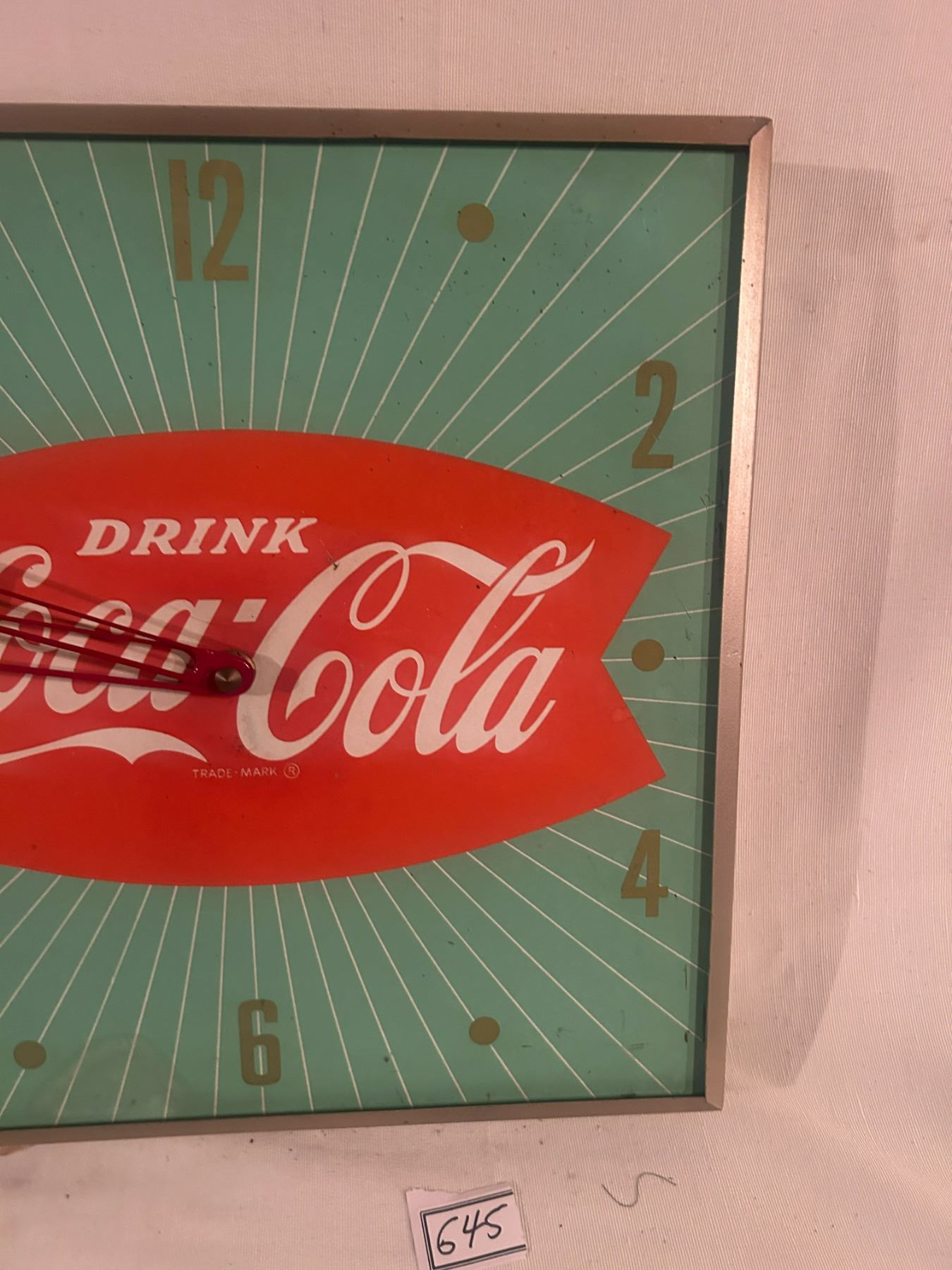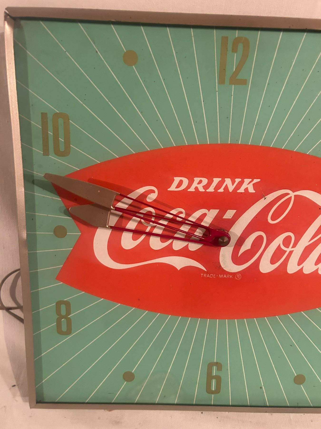 Coca-Cola vintage clock - fishtail logo, no front glass, working