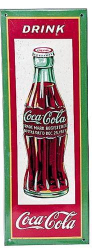 4.5"x12.5". only minuscule marks as well as 1 tiny paint chip under the "k" of drink and on the "c" of coca. Cond. 9.1-9.4+.