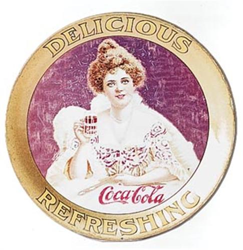 Nice example featuring Hilda Clark. Only very slightly faded. A few areas of small very tiny light whitish scratches and marks as well as a few tiny paint chips or nicks, possibly made that way at the top center of the tray in and near her hair. Otherwise, minor marks, a few spots and stains on the border and rim. Overall very nice appearance. Cond. 7.5-8.0 but shows even better.