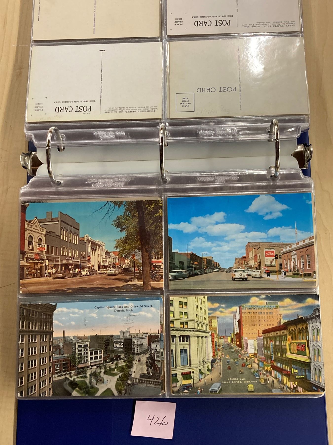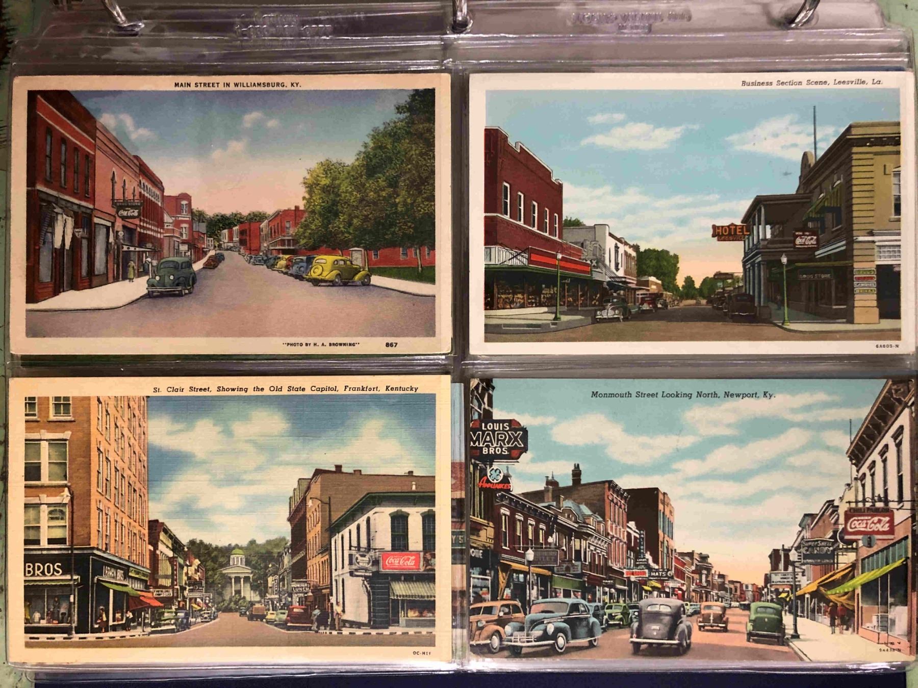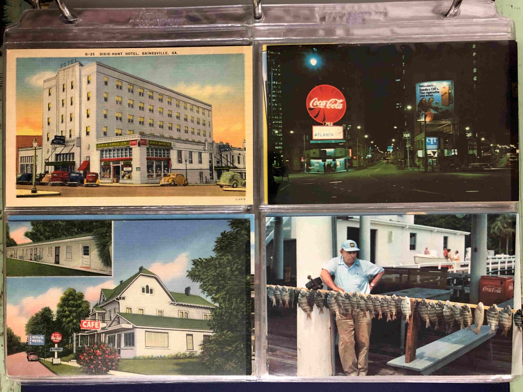Album of approx. 100 cards showing Coca-cola signs. From all over the USA. Early to standard size chrome. Street Scenes, restaurants, interiors, gas stations, etc.