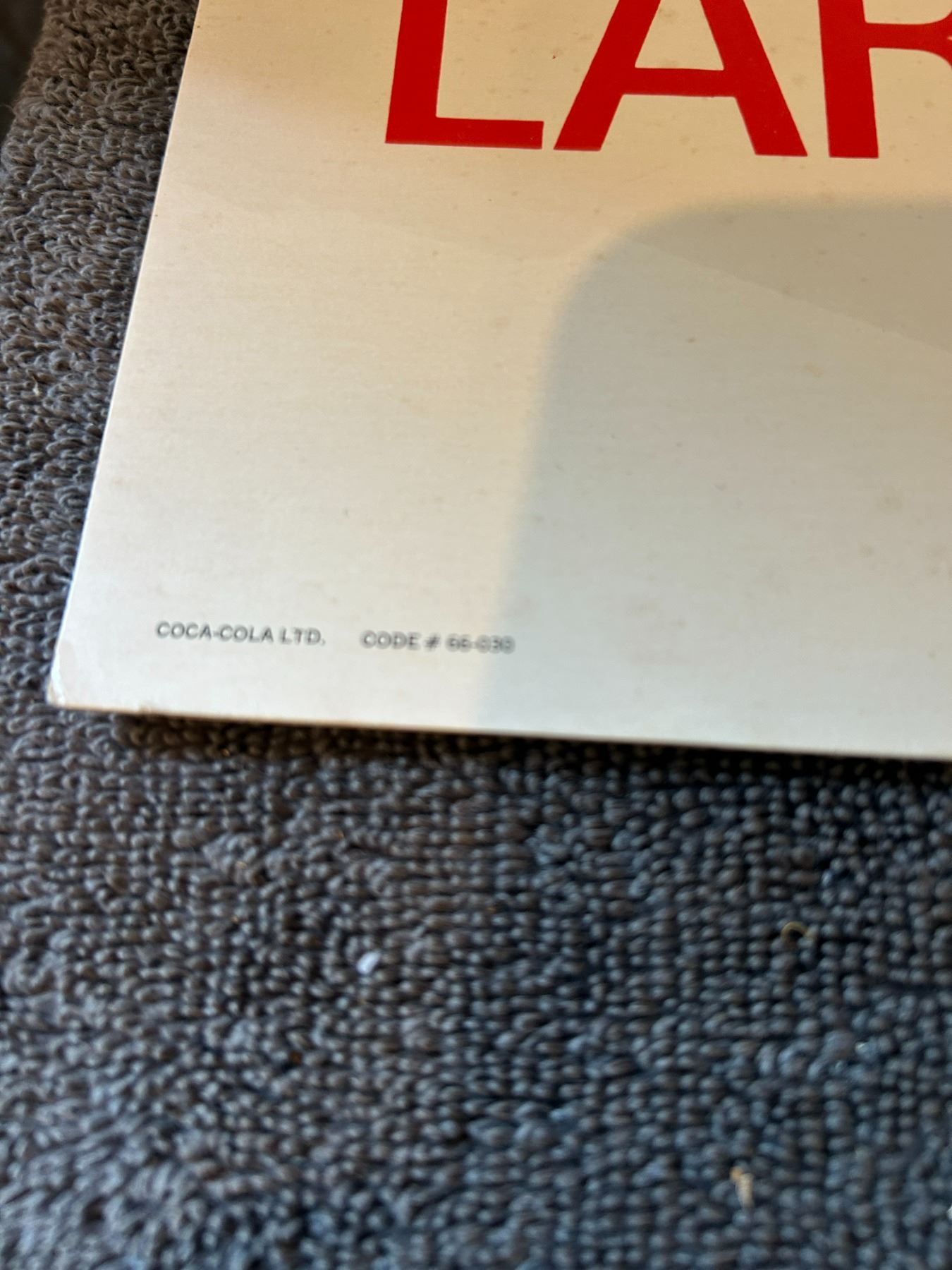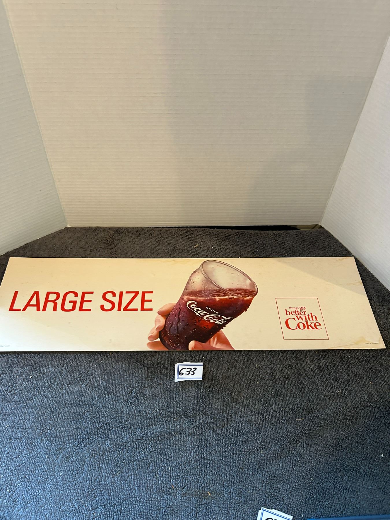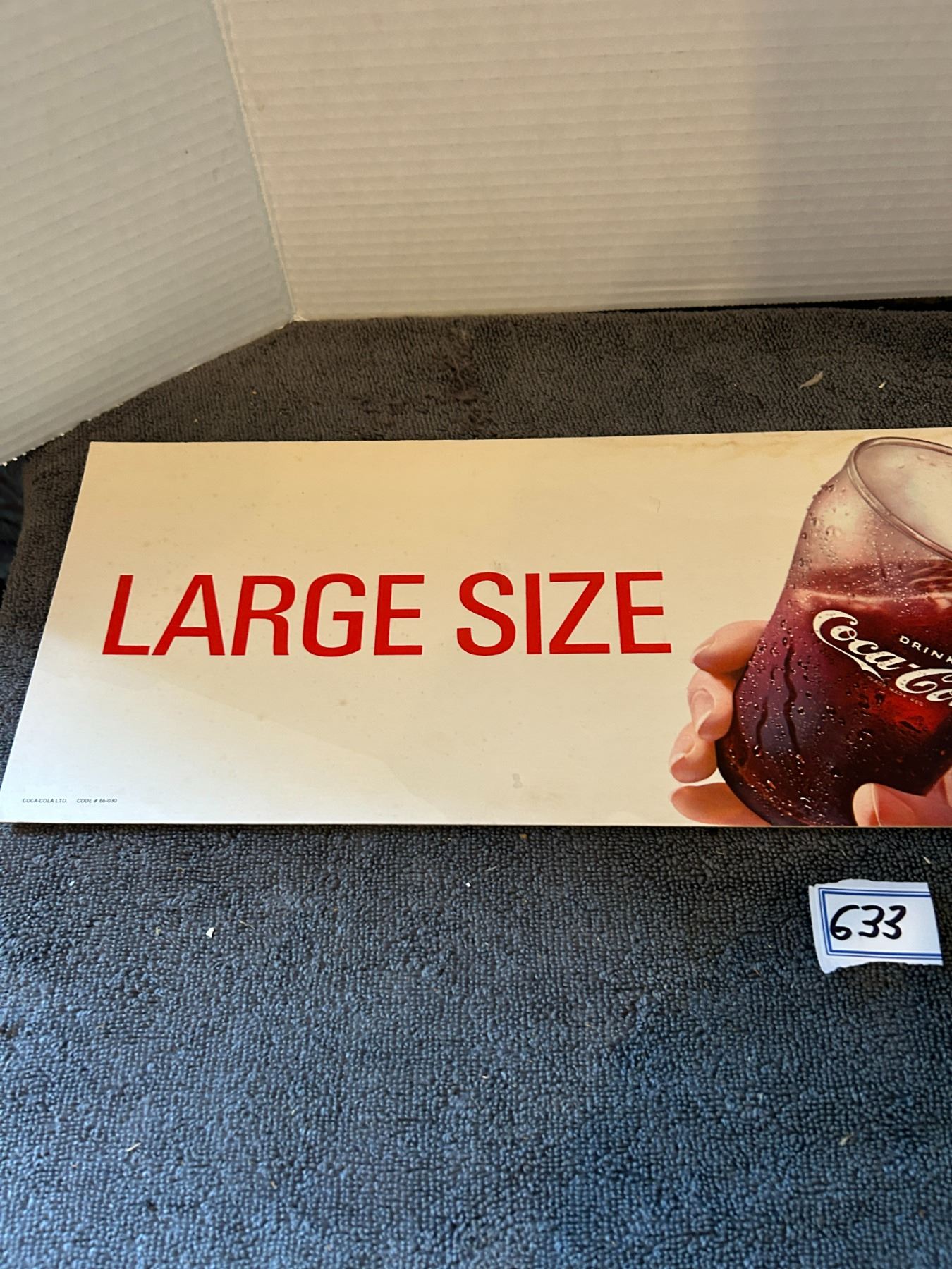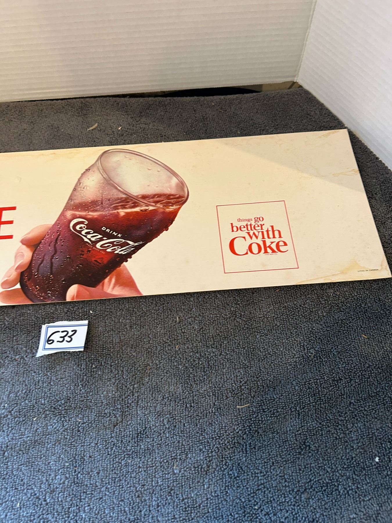 Coca cola cardboard sign- 1960;s from soda shop "NOS 24"x7" Large size