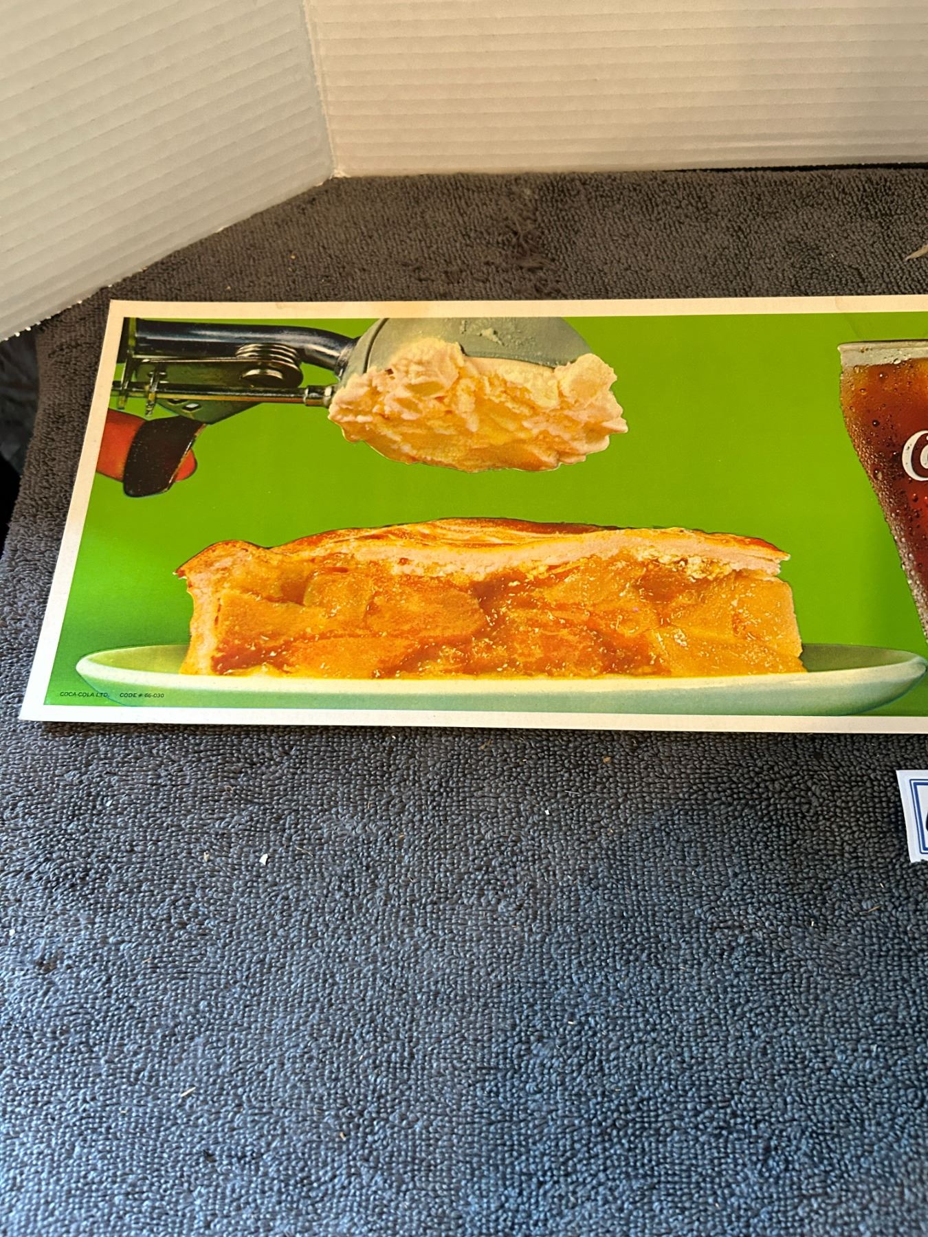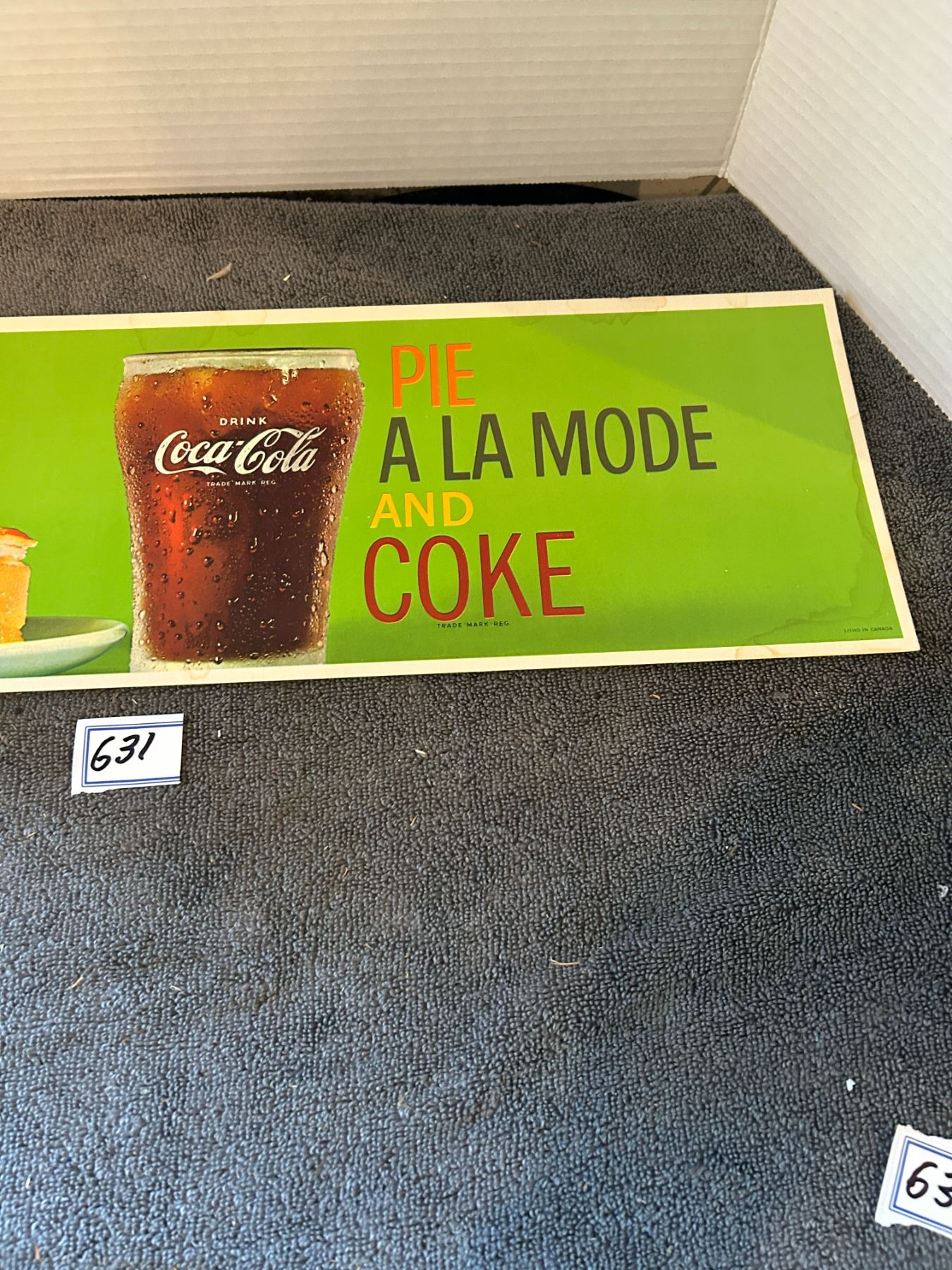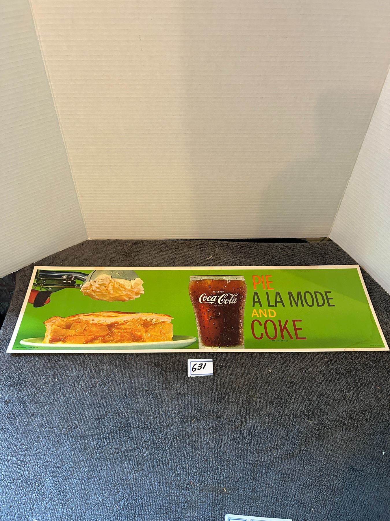 Coca cola cardboard sign- 1960;s from soda shop "NOS 24"x7" Pie a-la mode
