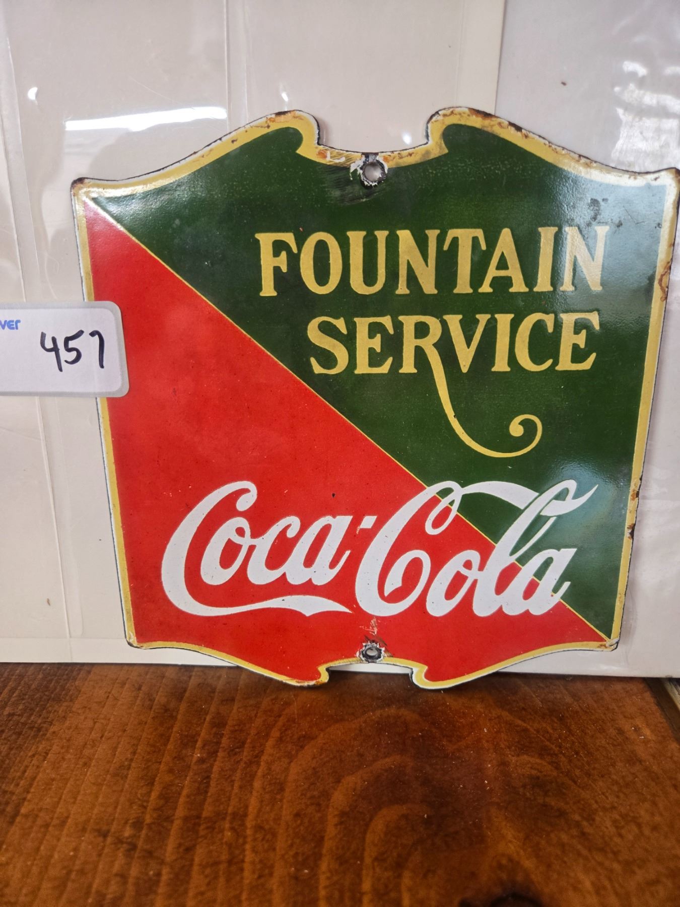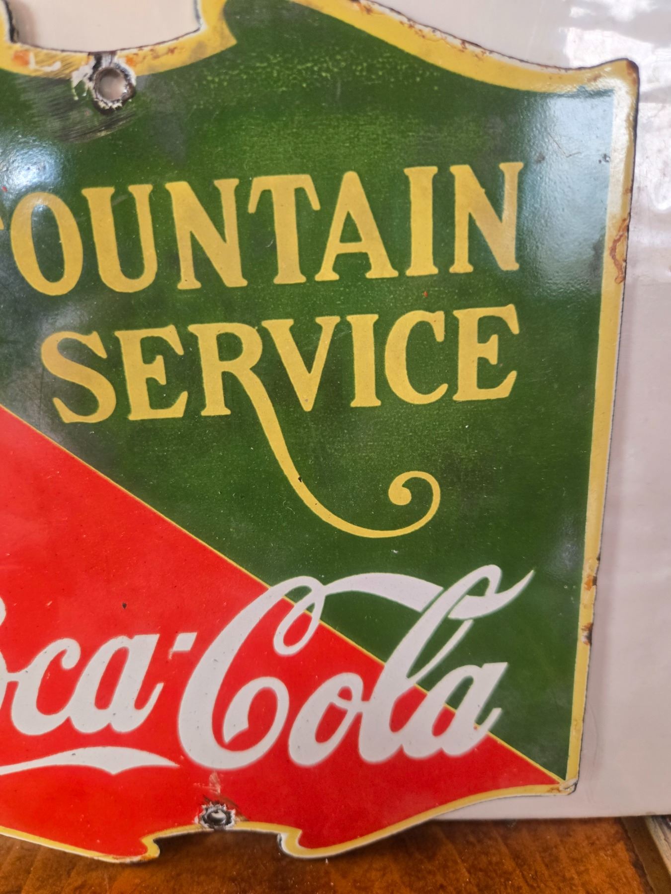 Coca-cola porcelain fountain service sign 6in widex6.5in tall. Single sided fantasy