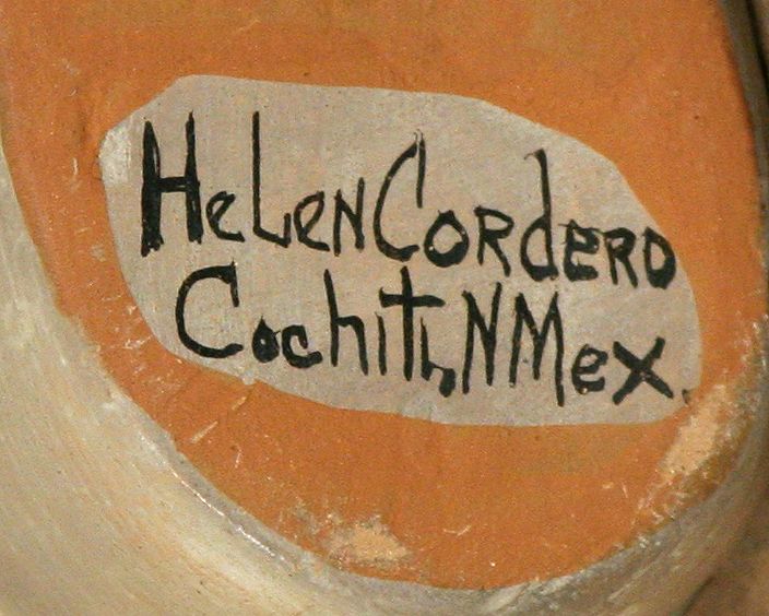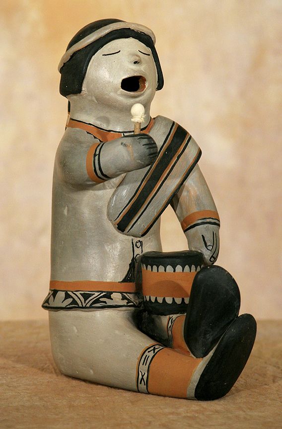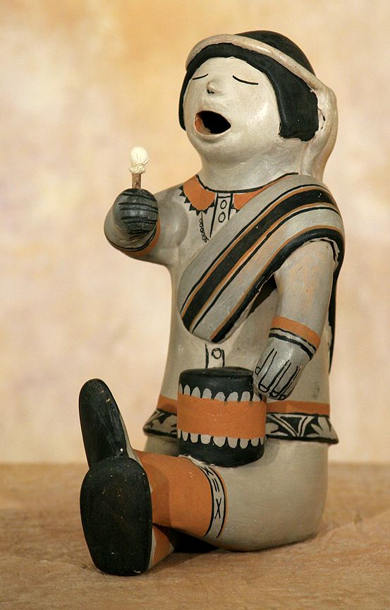 Cochiti Drummer by Helen Cordero (1915-1994). 10 ½" x 5" x 7 ½" Male figurine, circa 1960s. One of her more desirable figurines!. (est. $10,000-15,000). CONDITION REPORTS: www.auctioninsantafe.com/docs/cr2012.pdf