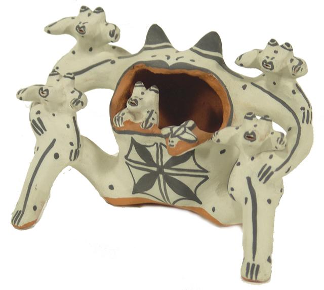 Circa 1980s, Martha Arquero, Unique original design pottery doll with six children. 3" x 5-5/8" x 4"