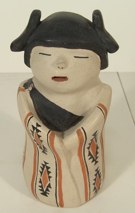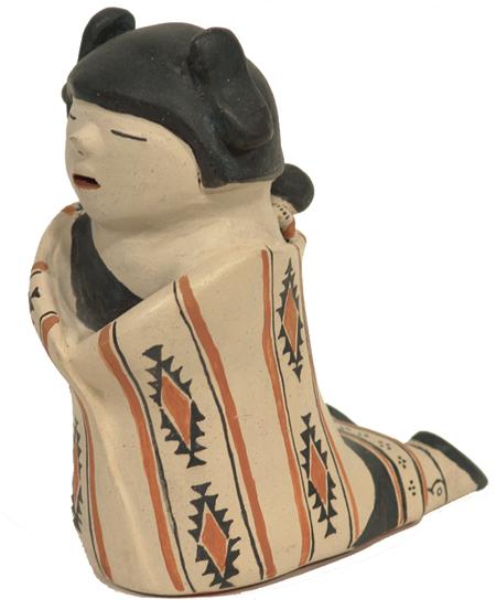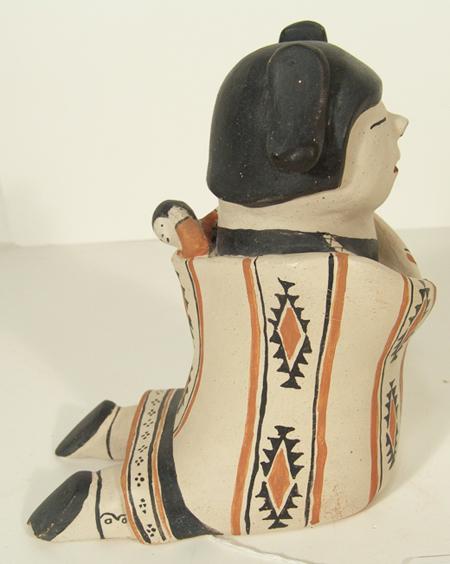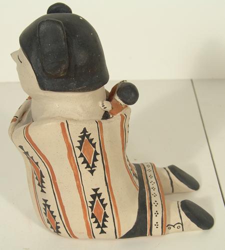 Beautifully made traditional pottery figure - a kneeling mother with a baby on her back - all wrapped in a robe. Signed. Appraisal value $9,500. Condition: very good. 8-1/2" high x 8" diameter