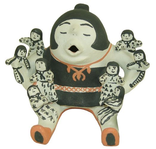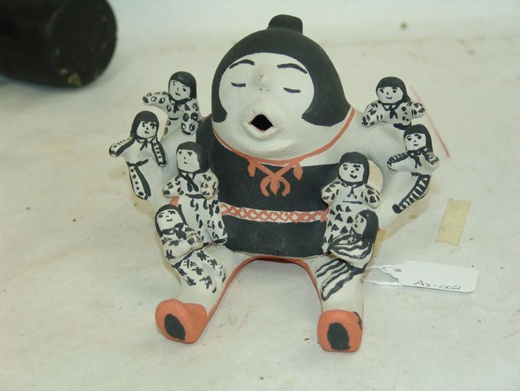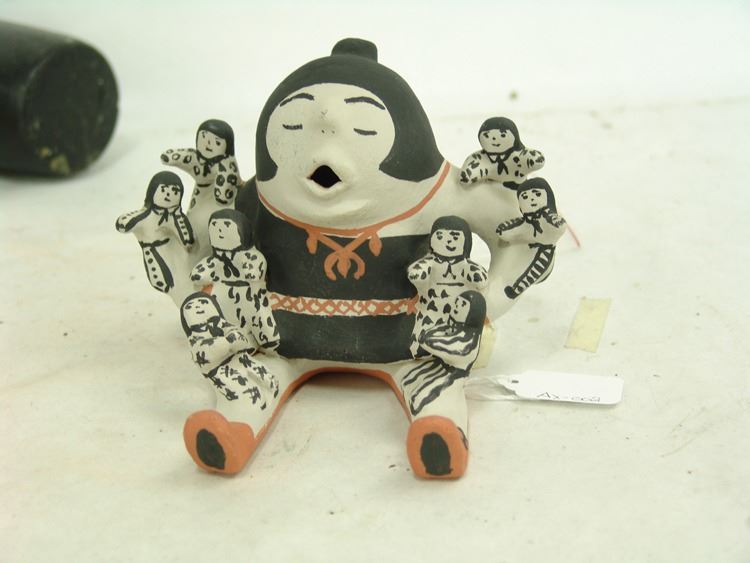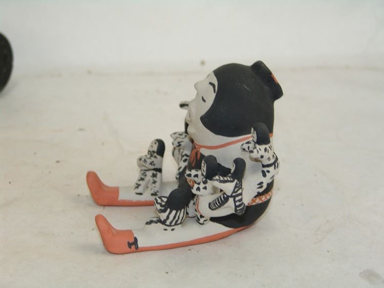 Wonderful vintage handcrafted pottery figure a seated "Storyteller" with eight attached children. Very good condition. Minor surface scratches.,Ca. 1980s,4-1/2" x 5" x 6-1/2"