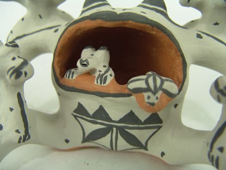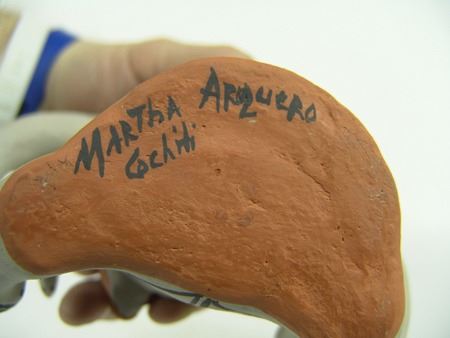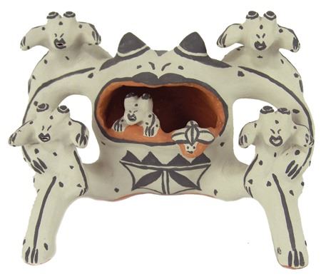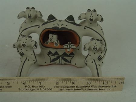 Ca. 1980s, Famous original Cochiti frog pottery storyteller doll by the famous Martha Arquero. Very good condition. 3-3/4" x 6-1/4" x 4-1/2"