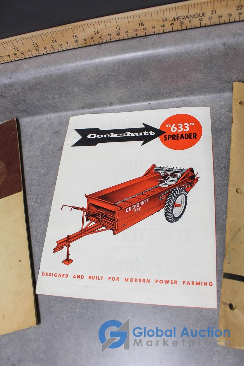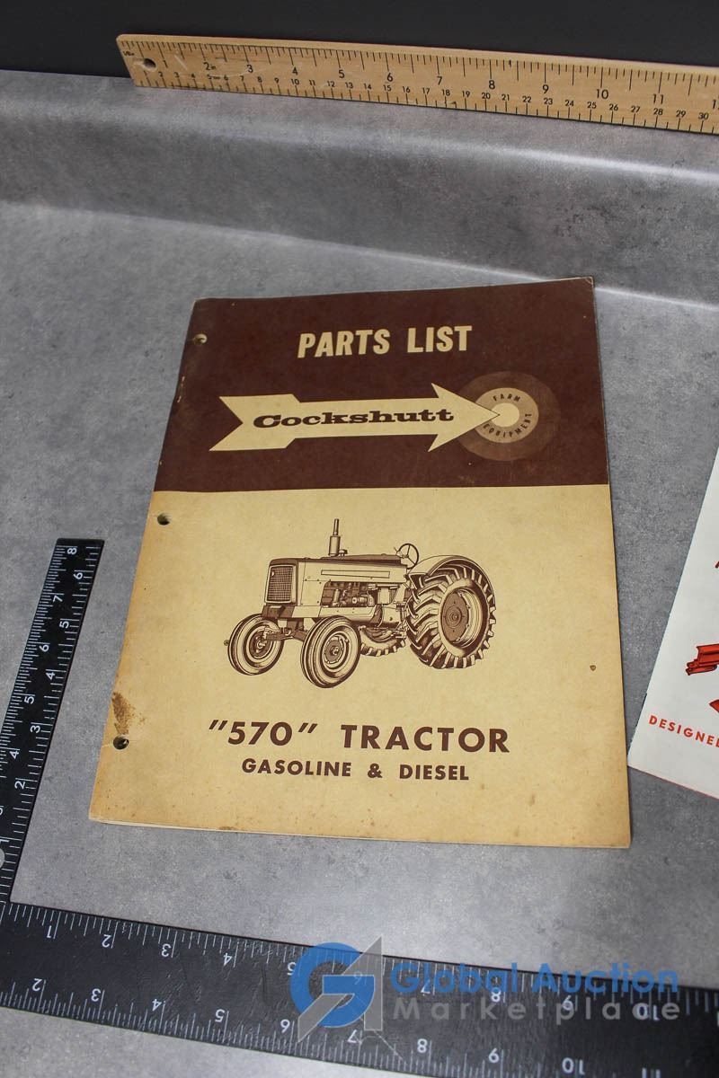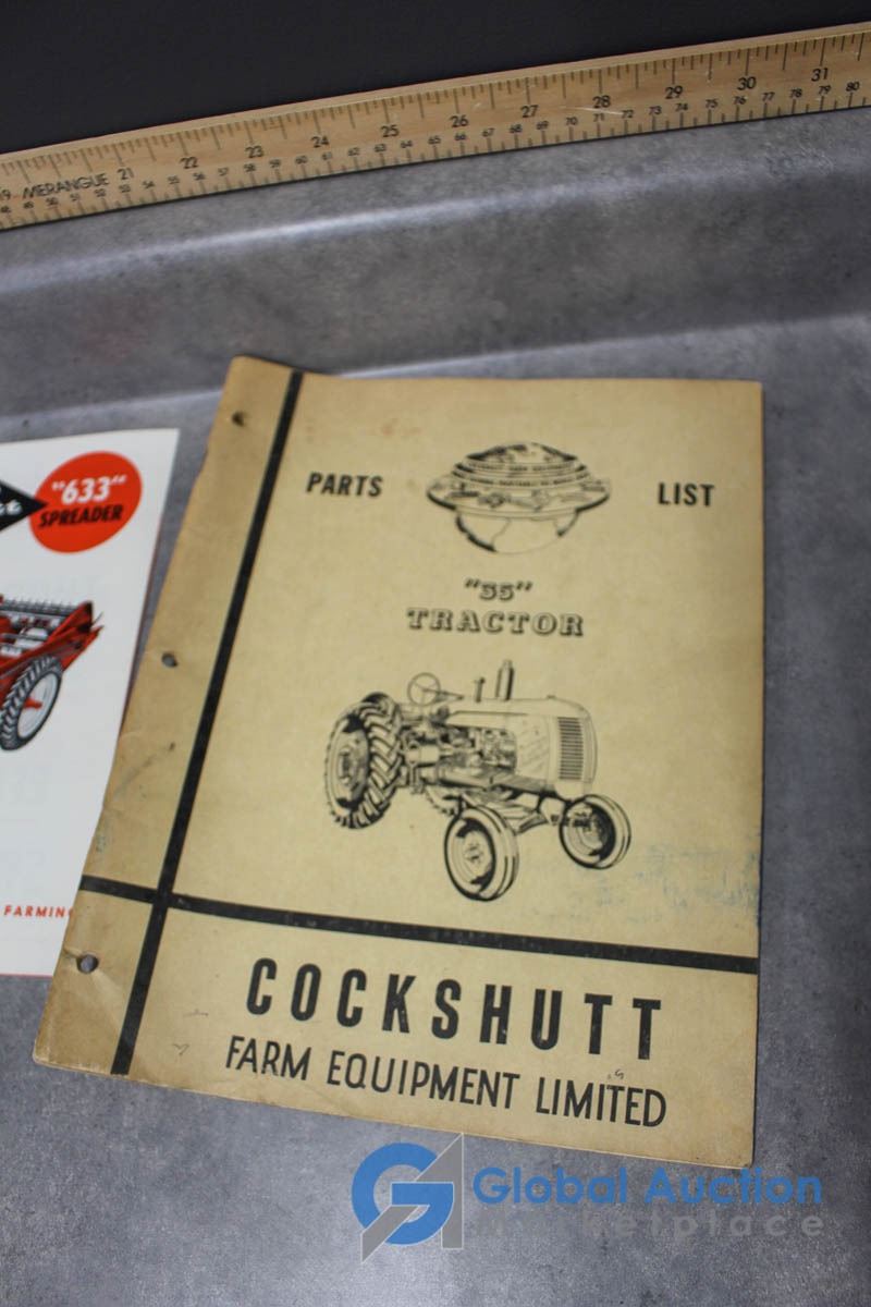 Cockshutt parts book 570 and 35, spec sheets 633 spreader.