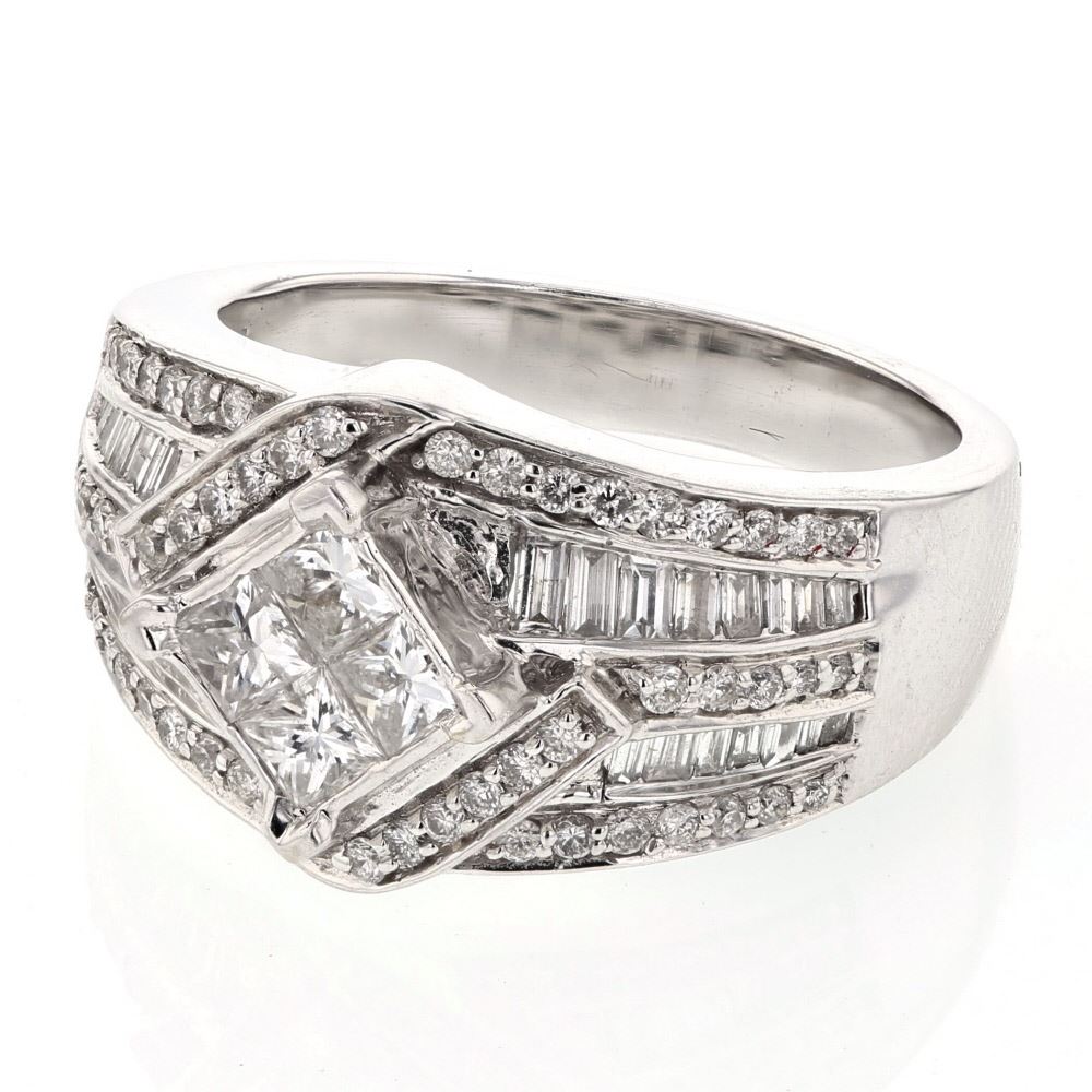 Cocktail Diamond Ring with Milgrain in 14K White Gold