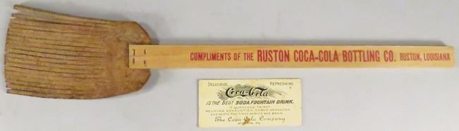 Coco Cola Coupon and Fly Swatter. H.P. Mead Fountain for one free glass and Ruston Bottling Co. Advertising Swatter.