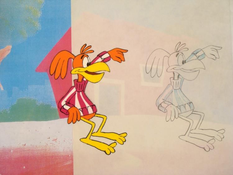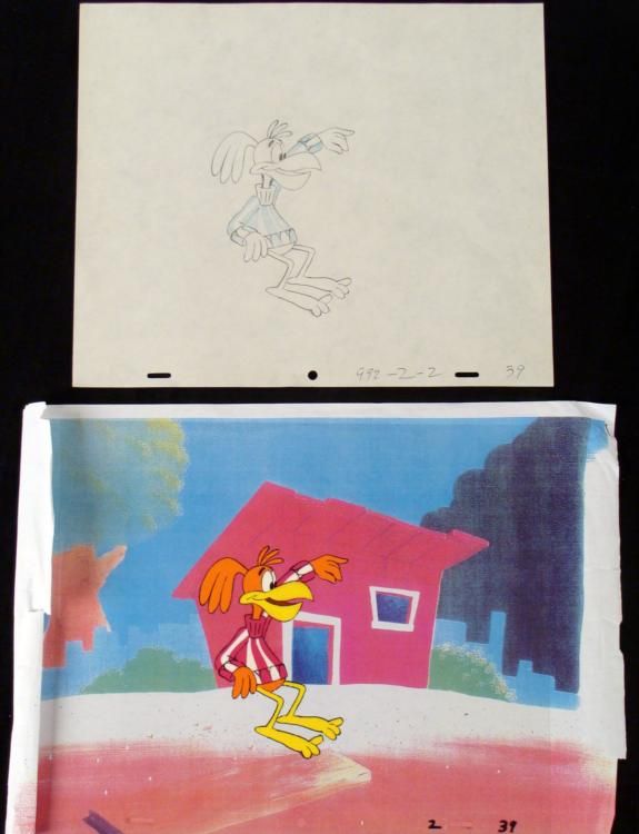 This is level of excitement you are at for my cereal. This is level where you need to be at for my cereal... * * * Original Drawing, Animated Cel, and Printed Background * Overall Size of Background: 11 x 17" Overall Size of the Cel: 10 1/2" x 12 1/2" * Original "rough" animation drawing, in non-photo blue and black pencil, with notations in black. * * * Overall Size of Drawing: 10 1/2" x 12 1/2"Overall Condition: Drawing- Excellent, Background- Good, & Cel- Very Good * * * This is an original hand-painted cel set-up used in the production of a "Coco Puffs" TV Commercial. Each one-of-a-kind set-up represents a slight change in position of the characters. When individually photographed and projected in rapid succession, the * images appear to move. * * To create production cels, the original animator's drawing is transferred onto an acetate cel (by hand-inking and/or photo copying). The cel is then hand-painted on the reverse side. The background accompanying this set-up is a reproduction background. * * * The background, drawing, and cel are ready to be matted and framed. The animator's notations at the bottom of the drawing and cel. The backgrounds left and right side have been folded with rips to each side. There is some slight paint fade to Sonny's * outline. * * *