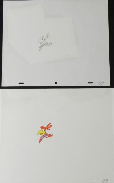 Hey, it was nothing, don't worry about it...Original Animation Cel and Copied Drawing in non-photo blue pencilOverall size: 10 1/2" x 12 1/2"Overall condition: Cel- Excellent and Drawing- minor surface wear and small cut below handThis is an original hand-painted cel used in the TV commercial of "Coco Puffs". Each cel represents a slight change in position of the characters. When individually photographed and projected in rapid succession, the images appear to move.To create production cels, the original animator's drawing is transferred onto an acetate cel (by hand-inking and/or photo copying). The cel is then hand-painted on the reverse side.The cel and drawing are ready to be matted and framed. The animator's notations are at the bottom of both. The copied drawing is taped to a piece of paper.