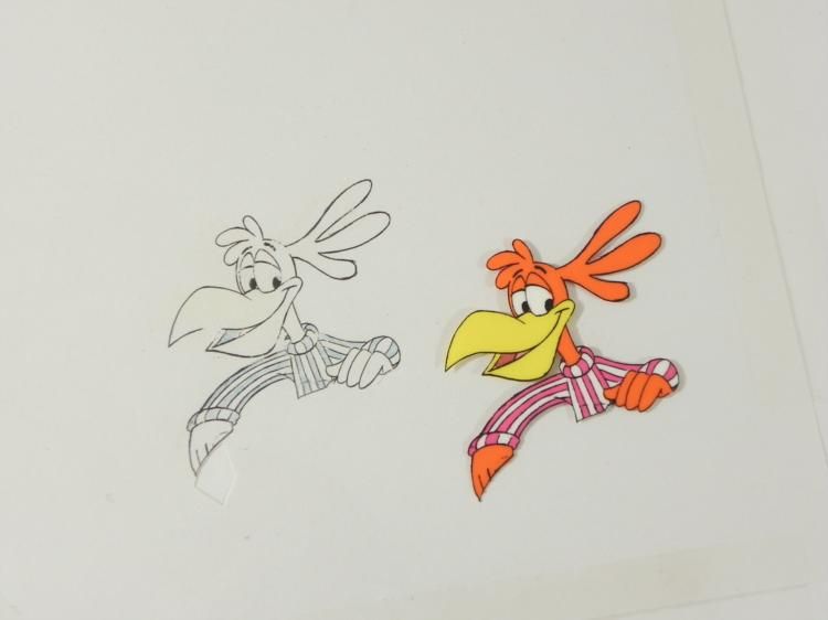 Hey, it was nothing, don't worry about it...Original Animation Cel and Copied Drawing in non-photo blue pencilOverall size: 10 1/2" x 12 1/2"Overall condition: Cel- Excellent and Drawing- minor surface wear and small cut below handThis is an original hand-painted cel used in the TV commercial of "Coco Puffs". Each cel represents a slight change in position of the characters. When individually photographed and projected in rapid succession, the images appear to move.To create production cels, the original animator's drawing is transferred onto an acetate cel (by hand-inking and/or photo copying). The cel is then hand-painted on the reverse side.The cel and drawing are ready to be matted and framed. The animator's notations are at the bottom of both. The copied drawing is taped to a piece of paper.
