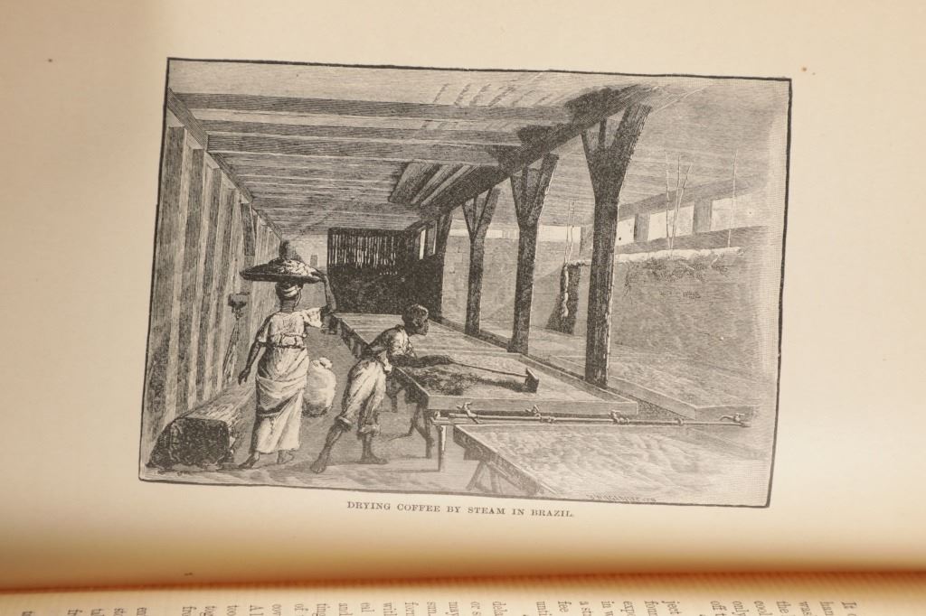 Presented in this lot is "Coffee: From Plantation to Cup", Francis B. Thurber, 1885, Eleventh Edition, copyright 1881. "Coffee: From Plantation to Cup A Brief History of Coffee Production and Consumption" is a 450 page tome on the history and culture of coffee, covering everything from its cultivation in various countries, its chemical analysis, to grinding, blending and making coffee. Topics covered include The Plant and Its Culture, Chemical Analysis of Coffee, Preparation of Coffee for Market, Cultivation in India, The Selection of the Coffee Bean, Roasting the Bean, Early History of Coffee, Grinding, Blending and Making Coffee, and much more. A fascinating book and an essential addition to the libraries of all coffee aficionados and connoisseurs, and would make the perfect gift for your favorite Java Junkie.