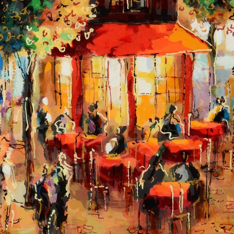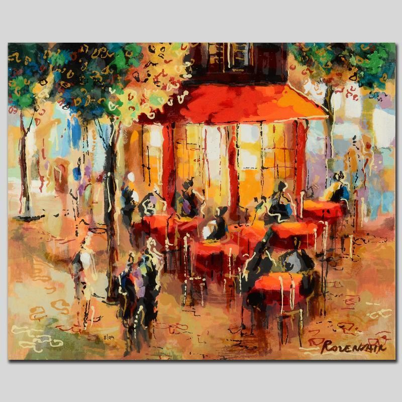 Michael Rozenvain's street scenes and quiet but evocative style are without equal! "Coffee in Paris" is a limited edition serigraph on wood panel, numbered and hand signed by Rozenvain! Includes Certificate of Authenticity! Measures approx. 14.5" x 12" (image).