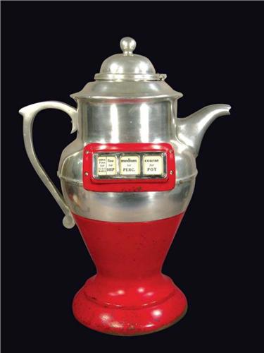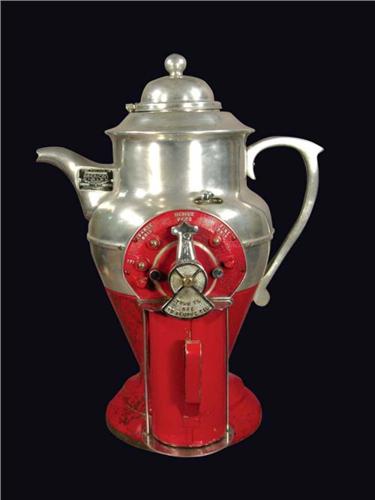 Coffee Pot Shaped Coffee Grinder by the American Duplex Co. Electric Coffee Cutter, Louisville, KY. All original in excellent condition. 28 1/2 X 22 inches.