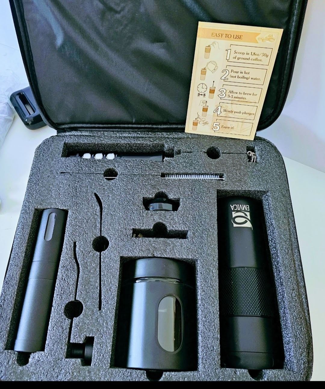Emvica 15Oz French Press Coffee Maker Set, Comes In Black, With Manual Coffee Grinder, Milk Frother, Canister, And Carry Bag, Brand New