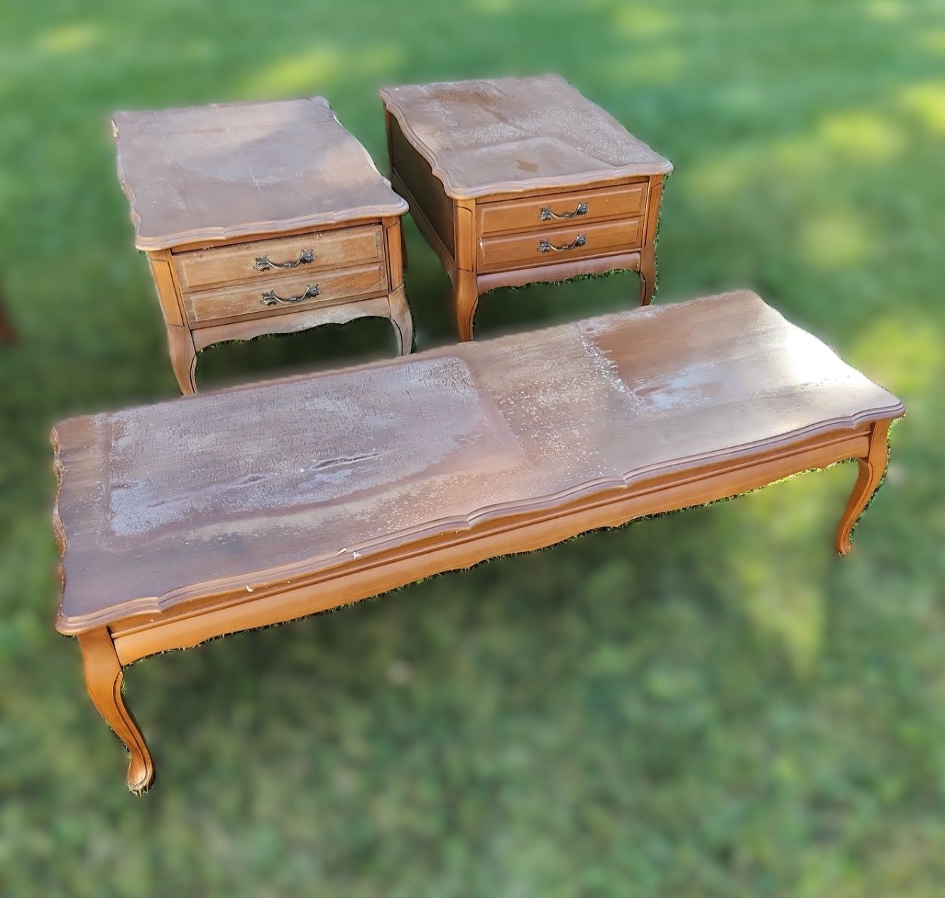 Coffee Table 52 W, 19 D, 15 T and Two Side Tables 20 W, 28 D, 21.5 T