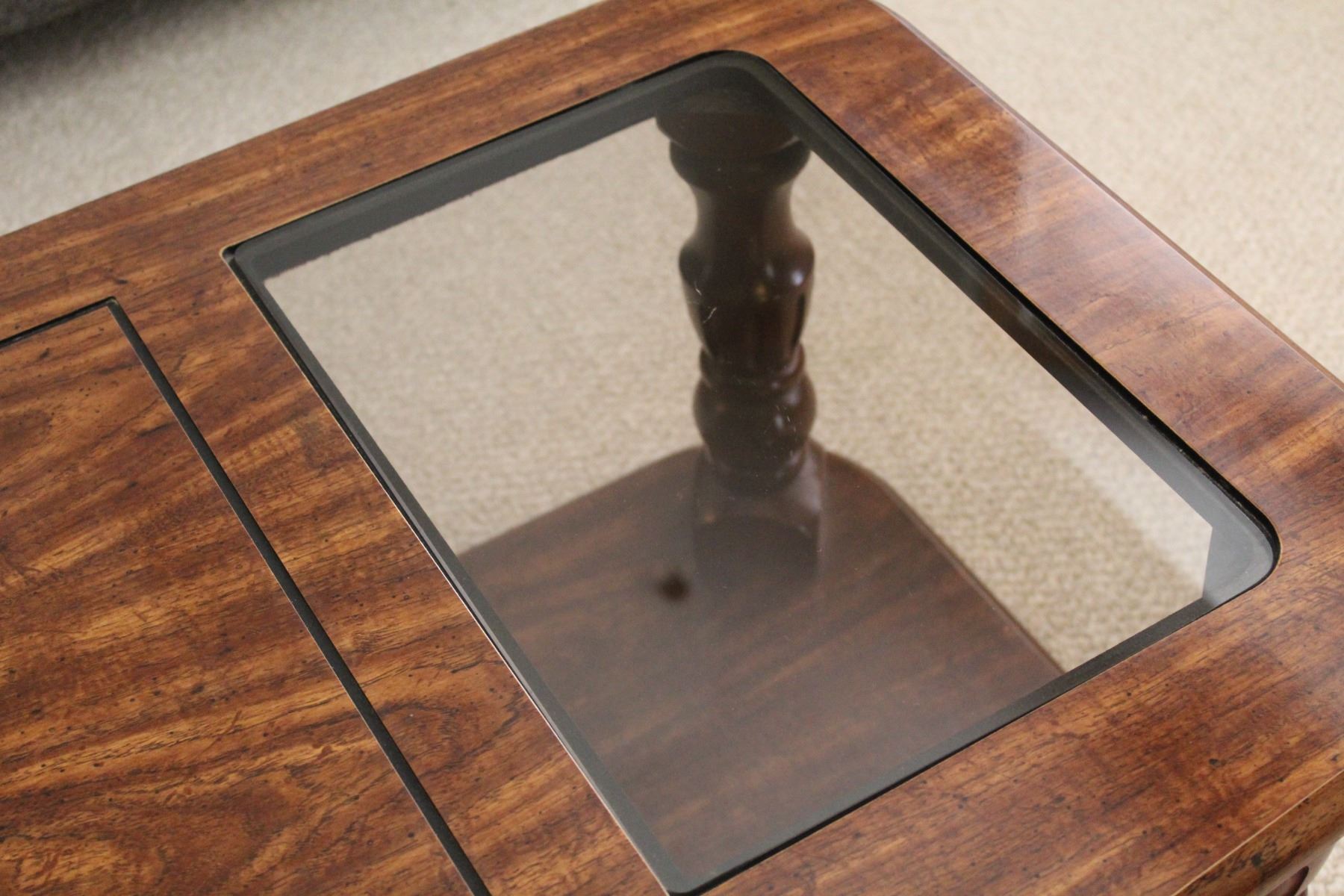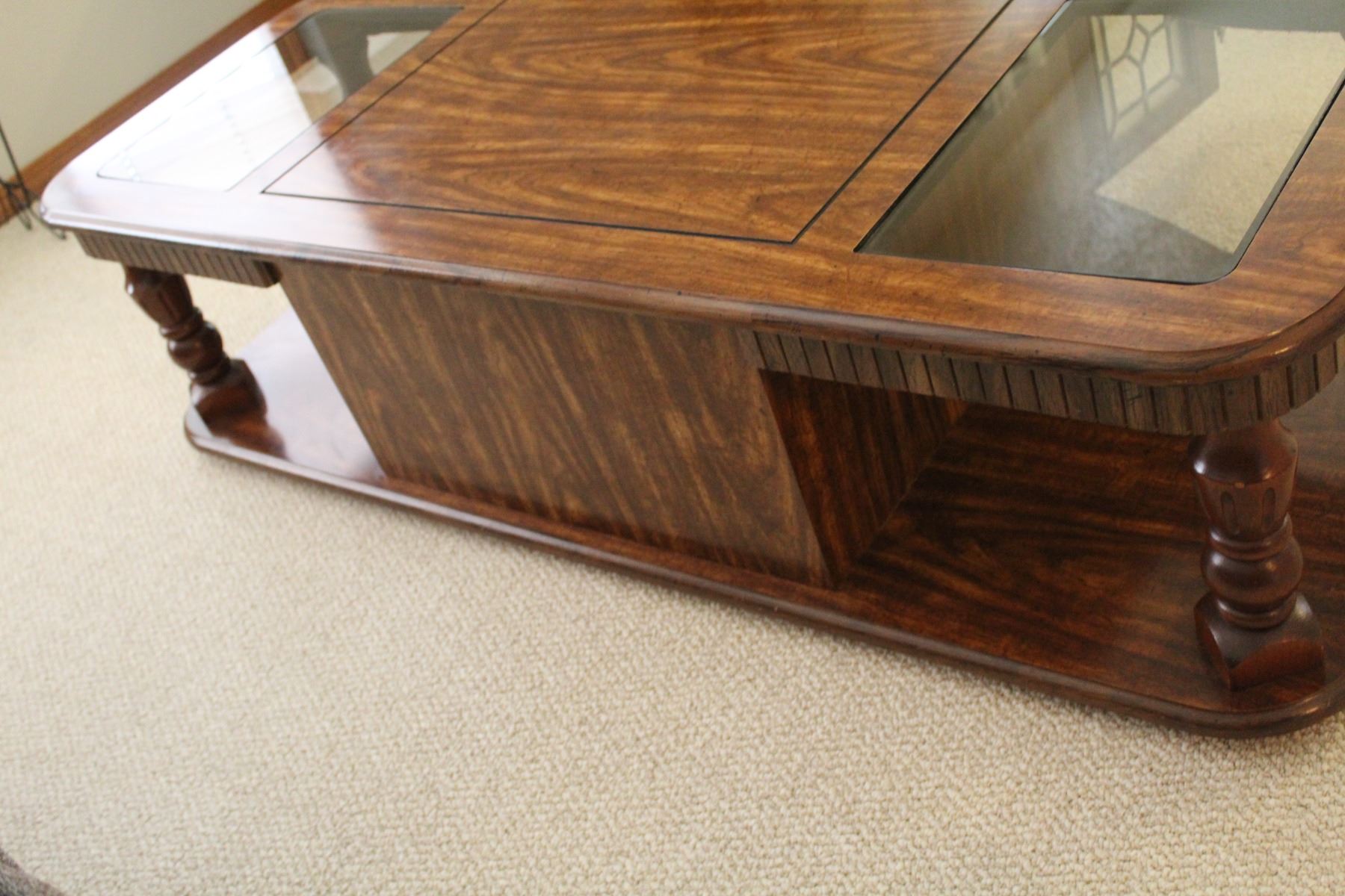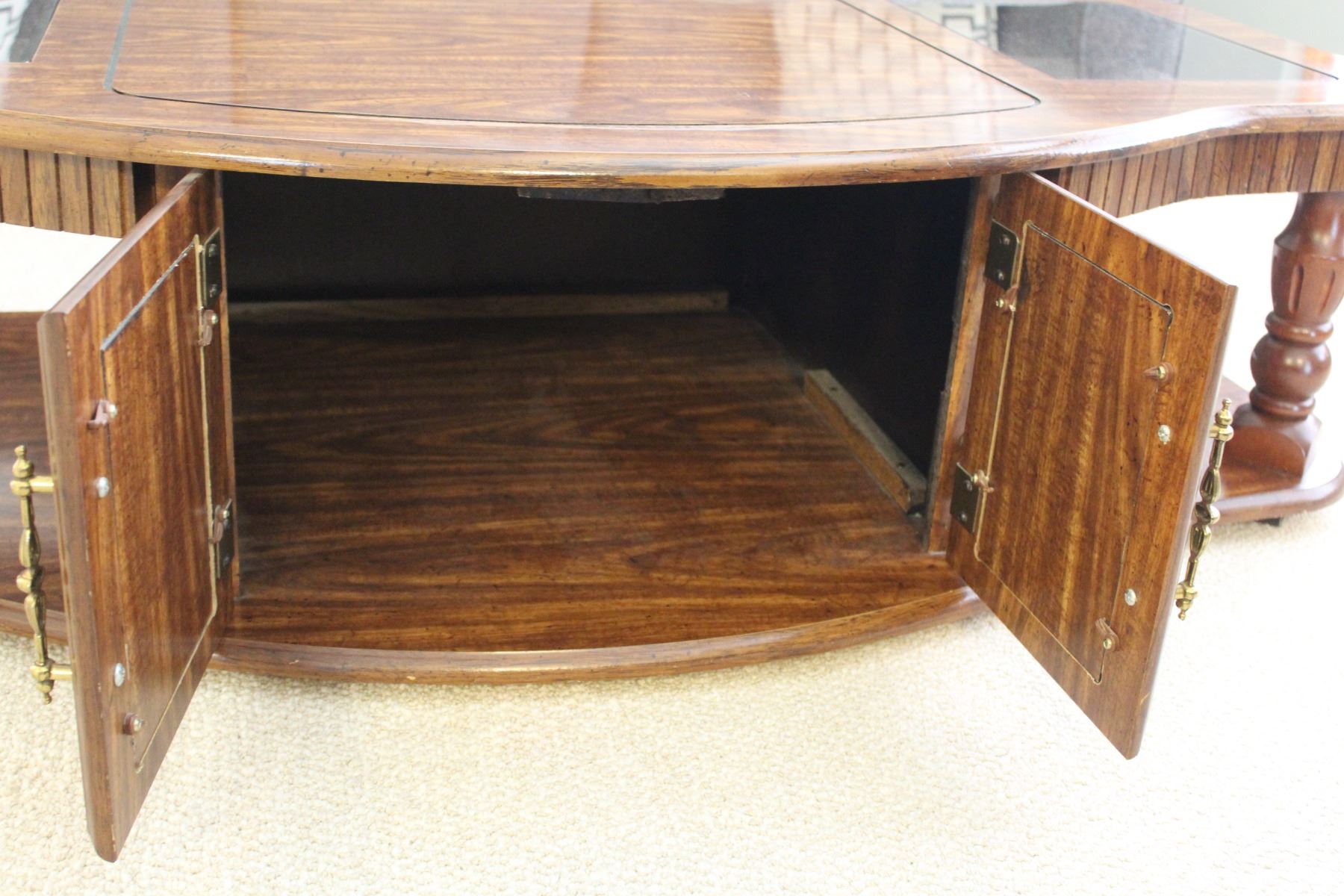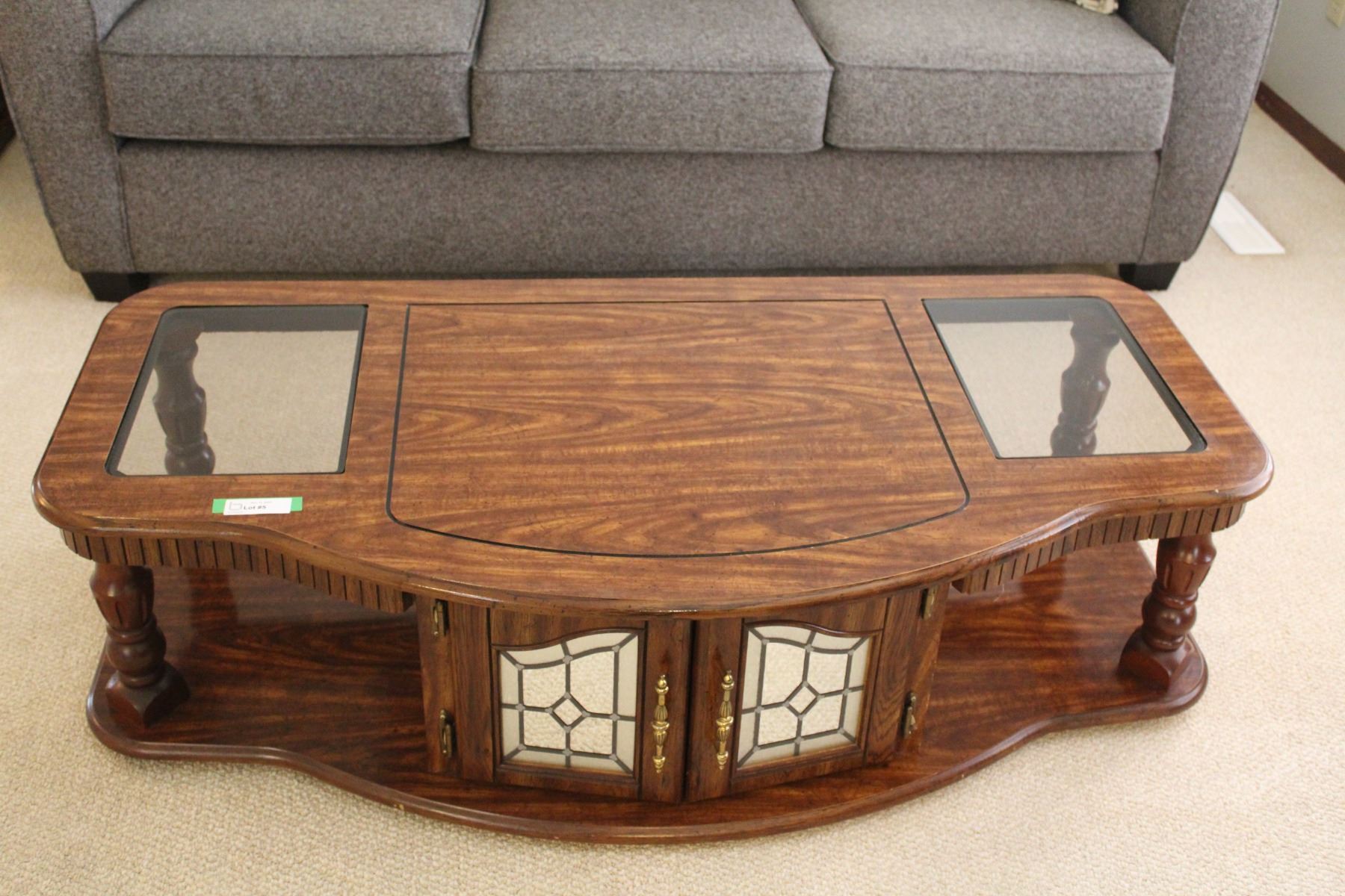 Coffee Table Wood & Glass Top w/Doored Storage Area - 54" x 26" x 15