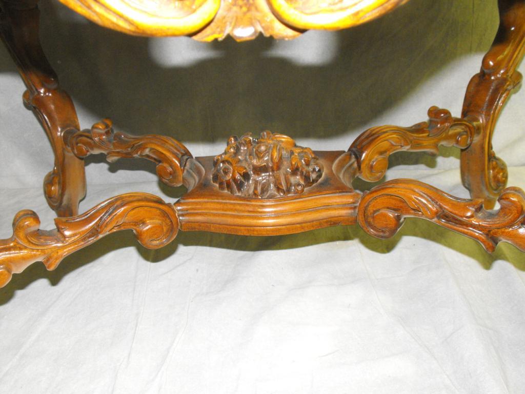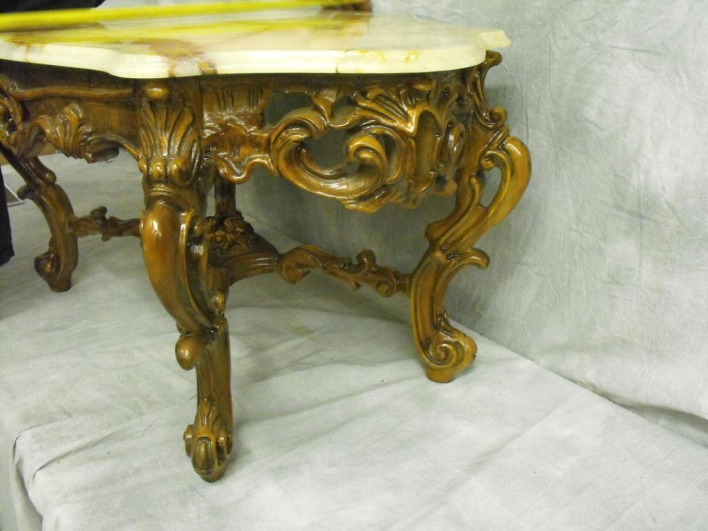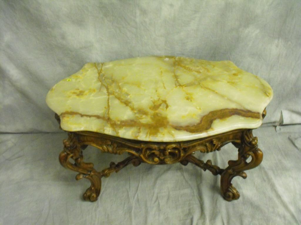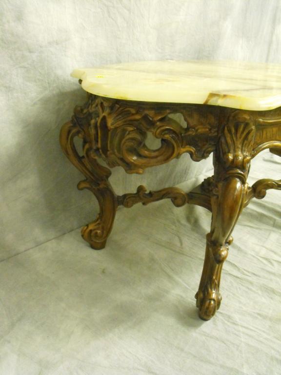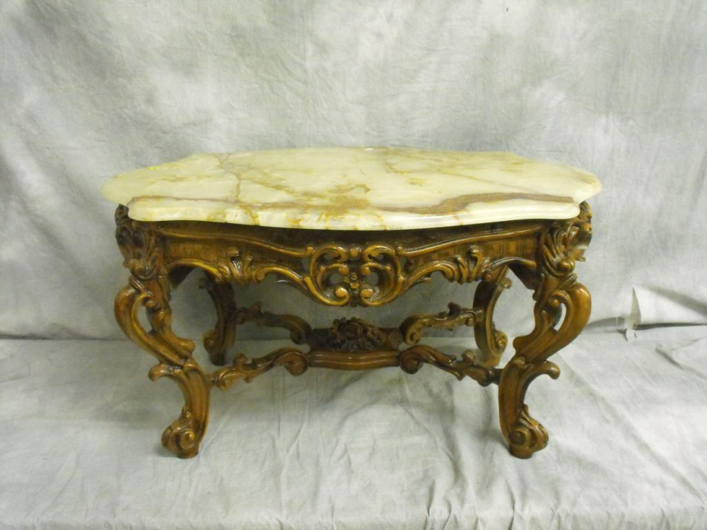 Louis XV Carved Walnut Coffee Table with Pierced with Carved Walnut Aprons of Rocail Foliate Motif and Roses With Molded Edge Circular Persian Marble Top, WIth Carved Capriole Legs and Scrolled Toes Excellent 26" Wide 41" Long 21" Tall