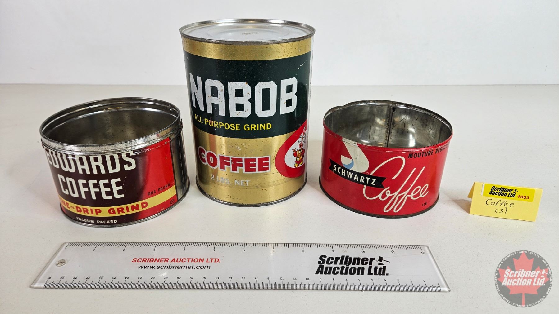 Coffee Tins (3) : Nabob, Edwards, Schwartz