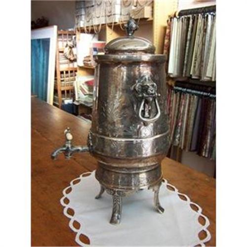</font></strong>Silver Plated Coffee Warmer, Circa 1870. Rogers Smith & Company, New Haven, CT. Stamped No. 1868. Has original Spicket with a white nut Handle. Wonderful detailed lion head handles and decorative geometric incised design overall on base. Original lid on top.</font>
