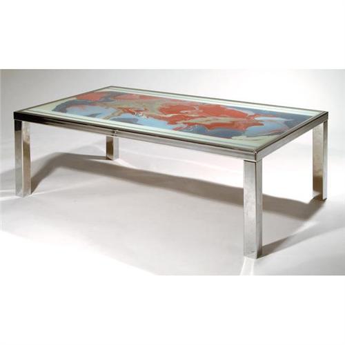 16h x 46w x 28d inches, chrome plated metal base, glass, signed by Remy lower left, NO RESERVE, great condition