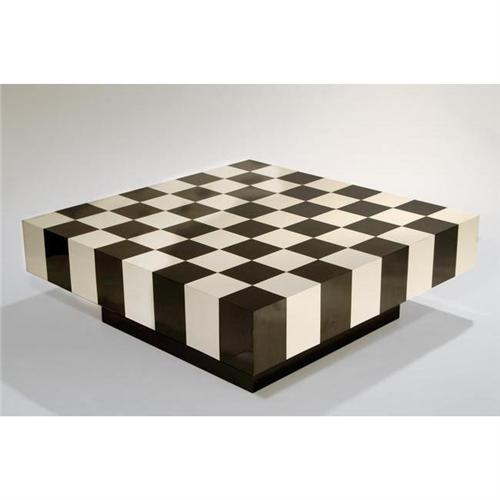 17h x 47.5w x 47.5d inches, black and white laminated panels on wood