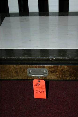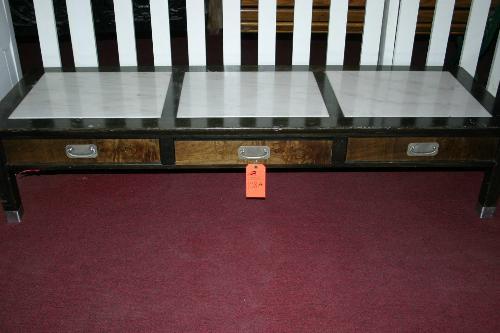 Coffee table with marble top.