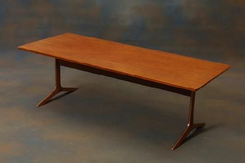 Coffee table, teak with metal inlaid on the legs. France & Sön, label: FF Attrance 6249261, H 46, 145x60, C1960, slightly worn.