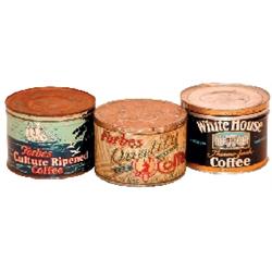 Coffee tins (3); White House Coffee, Forbes Culture Ripened Coffee & Forbes Quality Gas Roasted Coffee, all VG w/original lids & 4"H.