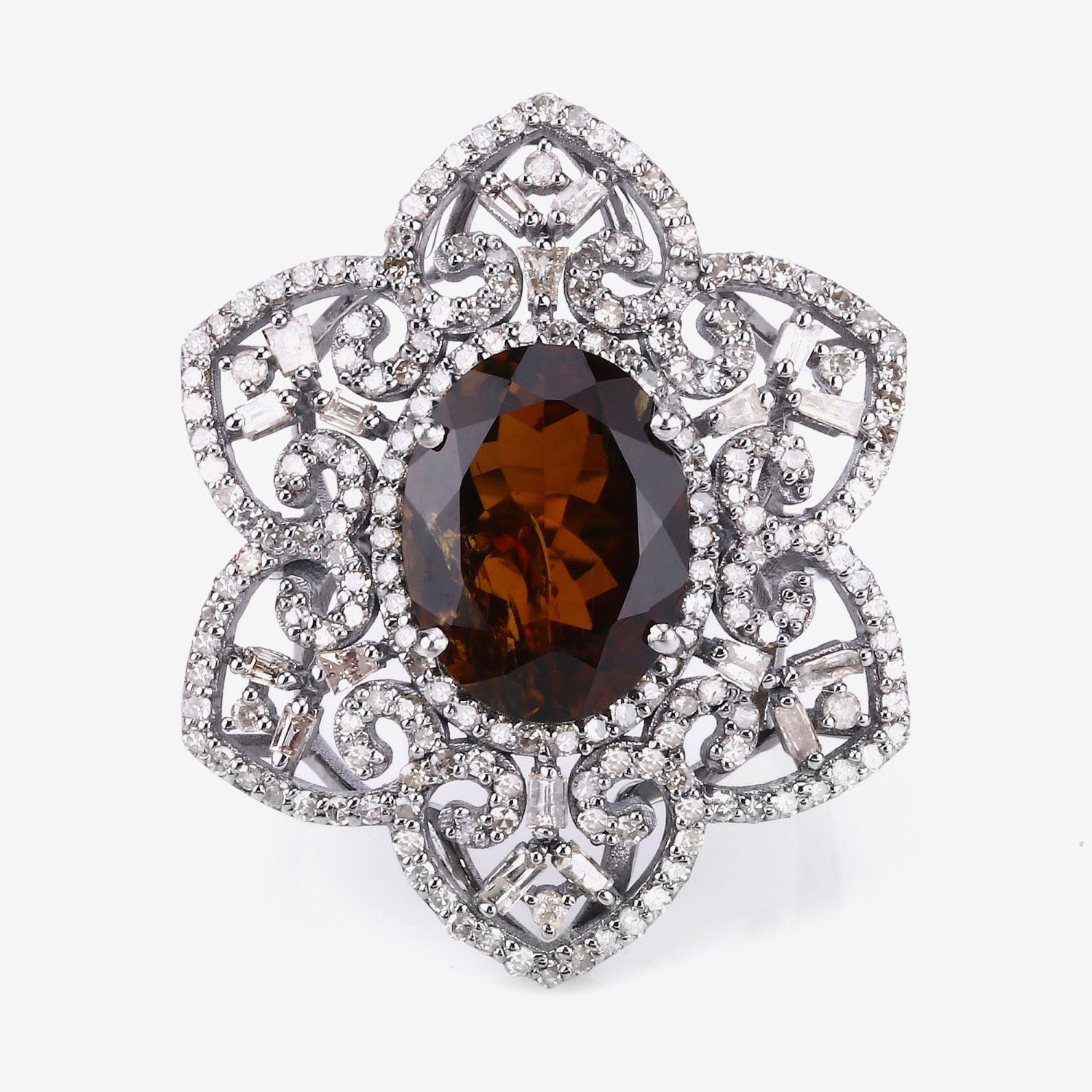 TITLE DESCRIPTION: Cognac-Colored Dravite Tourmaline and Diamond Ring