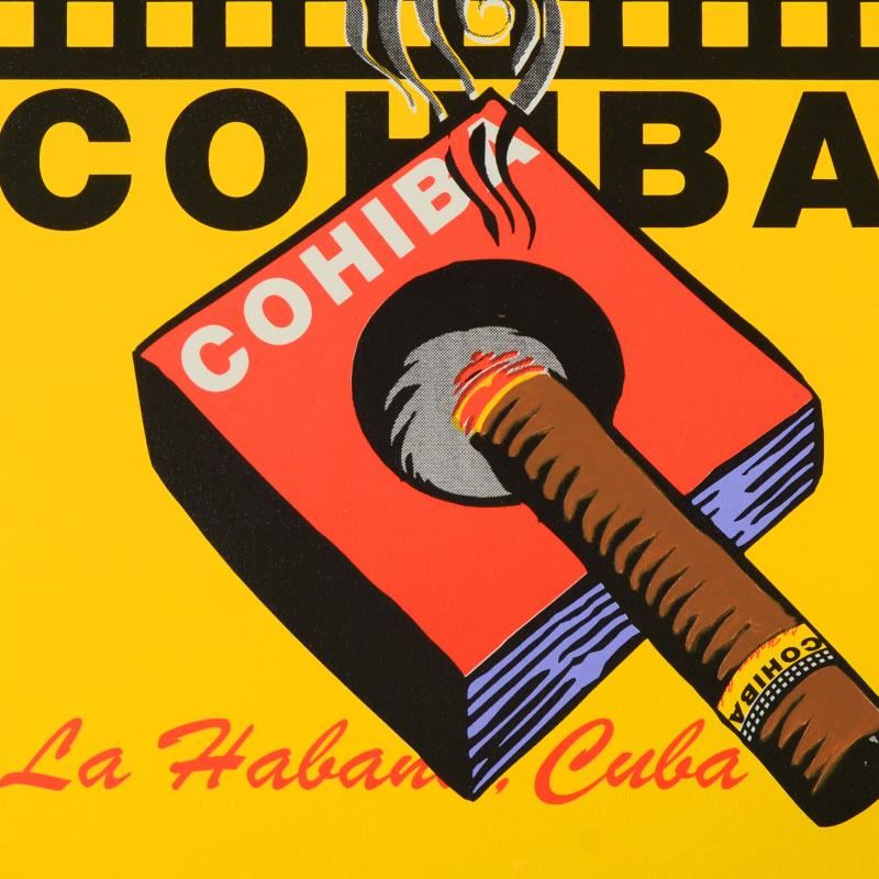 "Cohiba" is a limited edition silkscreen on canvas from an HC edition by Andy Warhol protege Steve Kaufman (1960-2010). This piece is hand signed inverso. Includes Certificate of Authenticity. Measures approx. 24" x 24" (image).