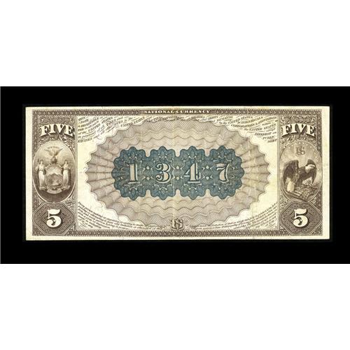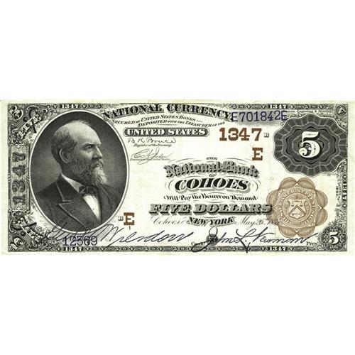 <B>Cohoes, NY</B></I> - $5 1882 Brown Back Fr. 469 <B>The NB of Cohoes</B></I> Ch. # (E)1347<BR>This attractive Albany County Brown Back has been off the market since our consignor obtained it back in 1994. It's as nice as any early note we know of from here, and has eye appeal considerably in excess of its technical grade of <B>Very Fine.</B></I>