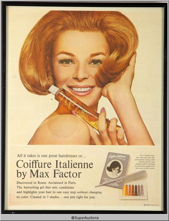 From The Max Factor Collection / Framed Coiffure Italienne Make-Up Advertisement 1965 / {10 1/2" L x 13" H}