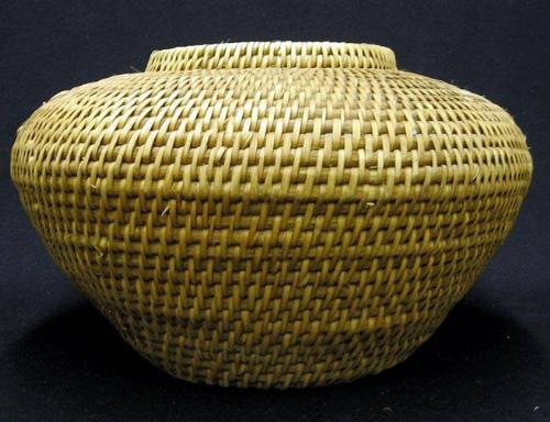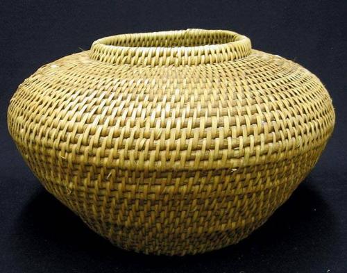 Coiled basket in vessel form; early 20th C. measures 11" high x 7 1/2" diameter at mouth (no visible defects)