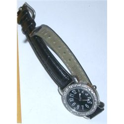 WATCH *JAPAN MOVEMENT* SS/BLACK BAND WITH STONES AROUND BEZEL!! ***Coin, Currency & All Items Listed in this auction - Grades, Conditions and Va...