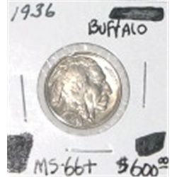 1936 BUFFALO NICKEL RED BOOK VALUE IS $600.00 *EXTREMELY RARE MS-66+ HIGH GRADE* !!