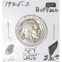 1925-S BUFFALO NICKEL RED BOOK VALUE IS $30.00 *RARE KEY DATE FINE GRADE* BUFFALO NICKEL CAME OUT OF SAFE!! ***Coin, Currency & All Items Listed...