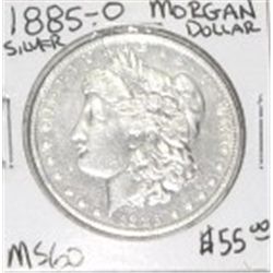 1885-O MORGAN SILVER DOLLAR RED BOOK VALUE IS $55.00 *RARE MS-60 HIGH GRADE*!! ***Coin, Currency & All Items Listed in this auction - Grades, Co...