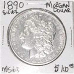 1890 MORGAN SILVER DOLLAR RED BOOK VALUE IS $100.00 *RARE MS-63 HIGH GRADE*!! ***Coin, Currency & All Items Listed in this auction - Grades, Con...