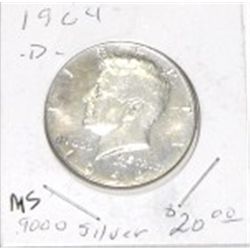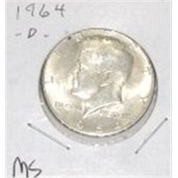 1964-D KENNEDY SILVER HALF DOLLAR *RARE MS HIGH GRADE*!! ***Coin, Currency & All Items Listed in this auction - Grades, Conditions and Values ar...