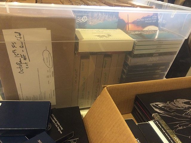 Large coin collection, being sold as is with many, many unopened boxes! Key items are the 2012 Silver, Clad and uncirculated sets all in oringla boxes shipped from the US Mint, unopend and some may qualify for PCGS "First Strike" designation base on shipping dates. Dates were not verified for all coins. There are brilliant, clean PCGS Proof 69 DCAM slabbed American Silver Eagles (7 including 1 first strike) and PCGS 69 Susan B. Anthony and 5 or more Sacagua dollars. Most of the coins are in the original shipping boxes from the US mint, including many of the Silver Eagles. The coins were originally slated to be graded by PCGS as some will qualify for "First Stike" designation. The boxes all contain the original printed order showing the tracking number matched to the tracking number on the outside of the box (validating the contents). This is a great starter set for a new collector or for somebody looking to start a coin business/hobby, or the seasoned collector looking for value. Fantastic item for Father's Day! Don't miss out on this opportunity! Total valued by owner at $6,500 - all being sold for 1 monies! Silver proof sets, Annuel Mint Sets, PCGS graded coins, limited edition proofs, and much more!