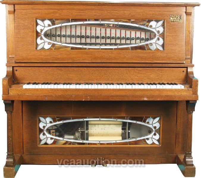 Coin-Op "Artemis" Upright Player Piano, oak w/ leaded glass