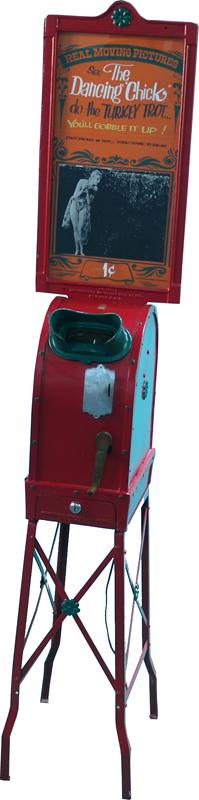 Coin-Op Cast-Iron Floor Model Mutoscope by International Mutoscope Reel Co. New York w/ "The Dancing Chick - You'll Gobble It Up!" movie & marquee w/ keys