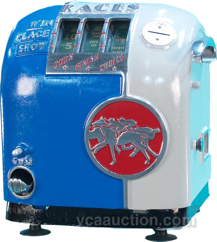 Coin-Op Countertop Daval "Races" 3-Reel Horserace Gumball Trade Stimulator, restored w/ keys