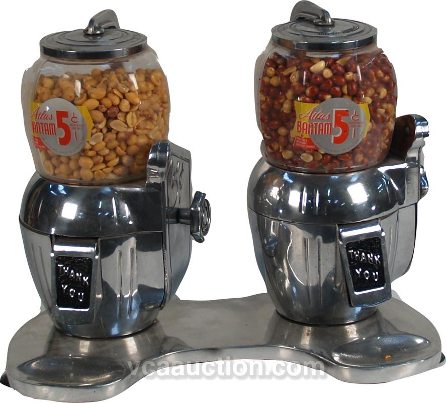 Coin-Op Countertop Double Atlas Bantam Bulk Vending Machine's by Atlas MFG. & Sales Co. c1947, on same tray w/ keys