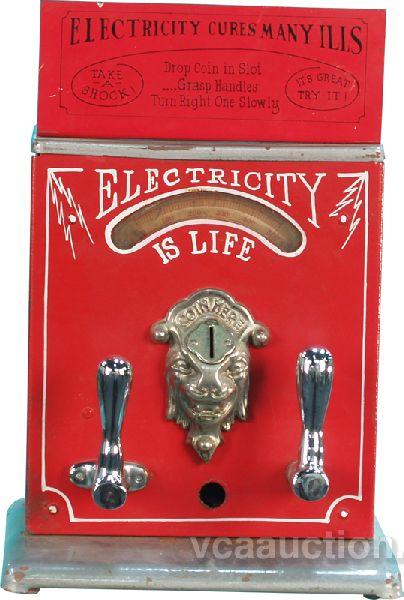 Coin-Op Countertop "Electricity Is Life" Shock Machine "Electricity Cures Many Ills"