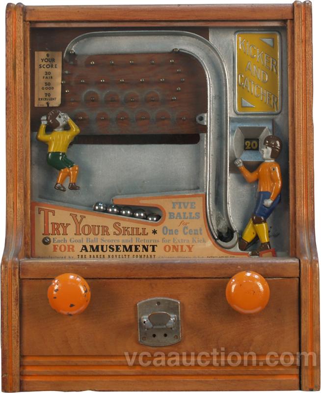 Coin-Op Countertop "Kicker And Catcher" Skill Amusement Trade Stimulator c1935 by Baker Novelty Co. Chicago, ILL. w/ keys